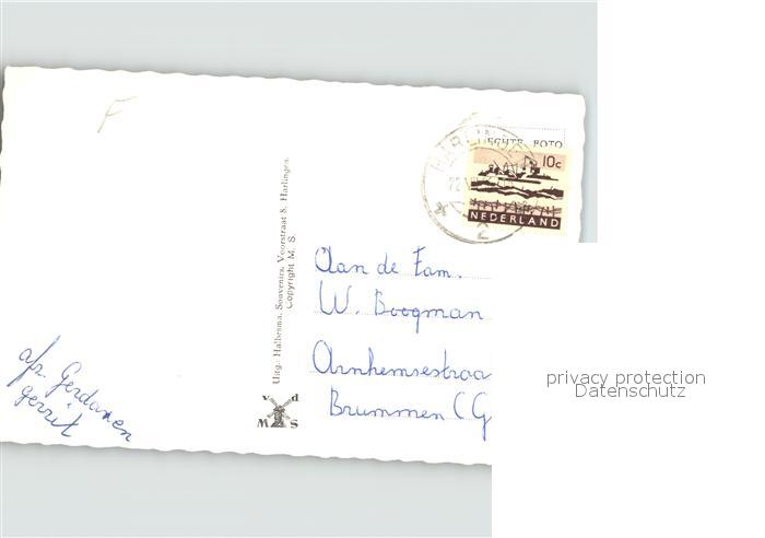 old postcard Harlingen Friesland Havenbrug Kerk Nieuve Willemshaven Schiff Kran postalisch gelaufen Erhaltung siehe scans