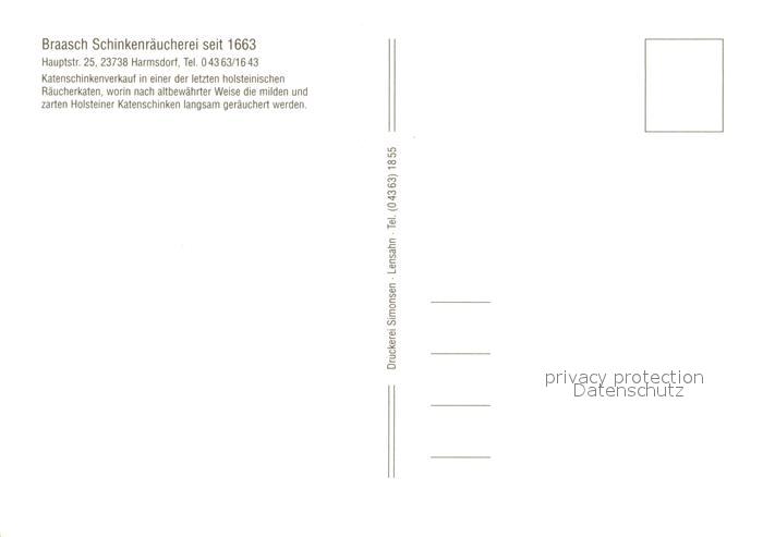73661731 Harmsdorf Holstein Braasch’s Schinkenraeucherei postalisch nicht gelaufen Erhaltung siehe scans [FriedD77] KatCode: 11110001055020
