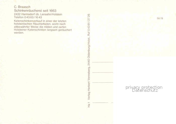 72674076 Harmsdorf Holstein Schinkenraeucherei Braasch Raeucherkate Inneres postalisch nicht gelaufen Erhaltung siehe scans [WerneD78] KatCode: 11110001055020