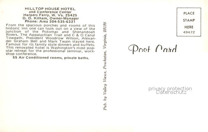 72944137 Harpers Ferry West Virginia Historic Hilltop House Hotel postalisch nicht gelaufen Erhaltung siehe scans [WerneD78] KatCode: 14140510000000