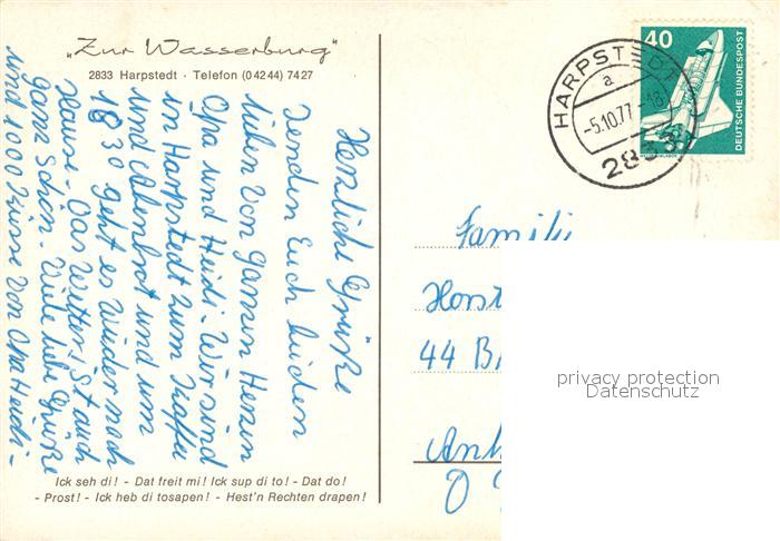 73172618 alte Postkarte Harpstedt Cafe Restaurant Zur Wasserburg postalisch gelaufen Erhaltung siehe scans [FriedD77] KatCode: 11110003458008