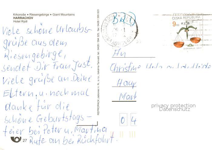 old postcard Harrachov Harrachsdorf CZ Hotel Rydl Pferdeschlitten Panorama postalisch gelaufen Erhaltung siehe scans [WerneD78]