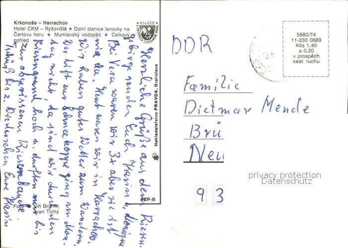 old postcard Harrachov Harrachsdorf Hotel CMK Ryzoviste Certovu horu Mumlavsky vodopad Panorama postalisch gelaufen Erhaltung siehe scans