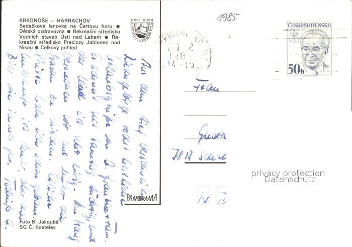 old postcard Harrachov Harrachsdorf Krkonose Seilbahn Skigebiet postalisch gelaufen Erhaltung siehe scans