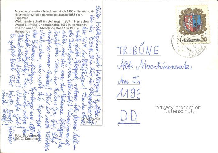 old postcard Harrachov Harrachsdorf Skispringen Weltmeisterschaft postalisch gelaufen Erhaltung siehe scans
