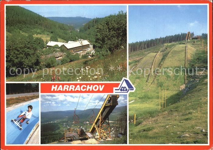 old postcard Harrachov Harrachsdorf Sommerrodelbahn und Sprungschanze postalisch gelaufen Erhaltung siehe scans
