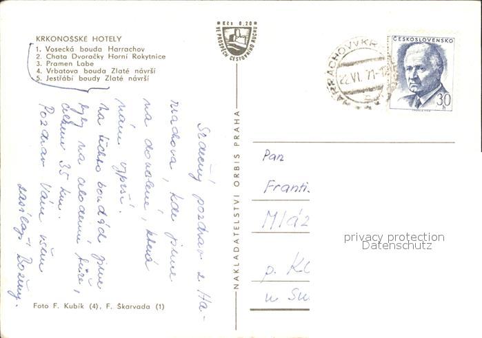 old postcard Harrachsdorf Harrachov Krkonosske Hotely Elbm?ndung postalisch gelaufen Erhaltung siehe scans