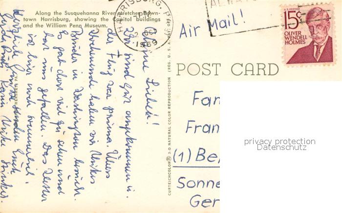 73645837 old postcard Harrisburg Pennsylvania Along the Susquehanna River Capitol buildings and the William Penn Museum Aerial view postalisch gelaufen Erhaltung siehe scans [WerneD78] KatCode: 14140410000000