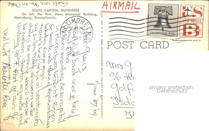 72449763 old postcard Harrisburg Pennsylvania State Capitol Buildings postalisch gelaufen Erhaltung siehe scans KatCode: 14140410000000