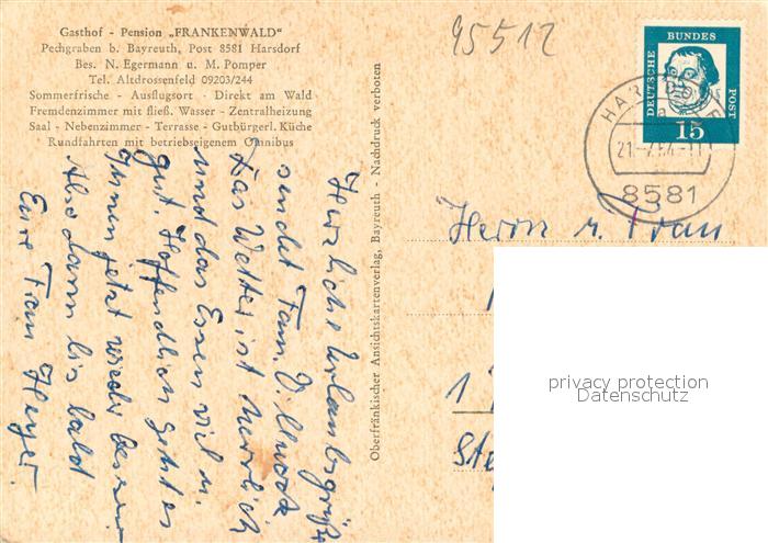 33659968 alte Postkarte Harsdorf Oberfranken Gasthof Pension Frankenwald postalisch gelaufen Erhaltung siehe scans [WerneD78] KatCode: 11110009477119