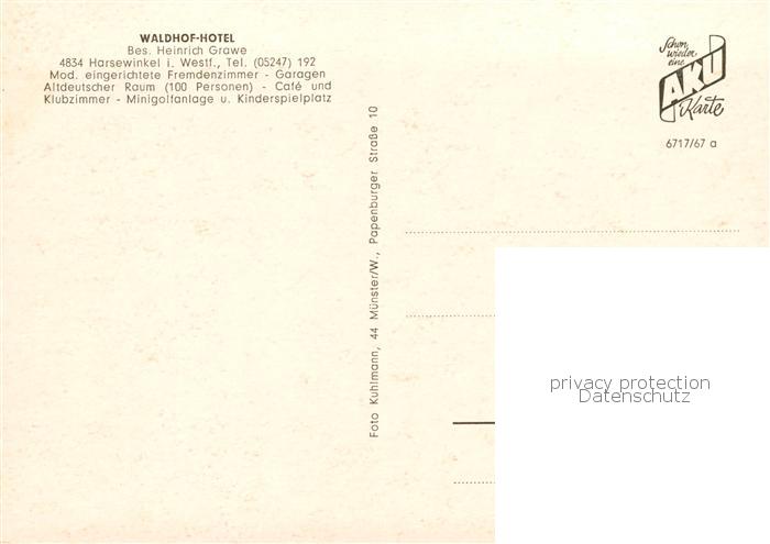 73856760 Harsewinkel Waldhof Hotel postalisch nicht gelaufen Erhaltung siehe scans [WerneD78] KatCode: 11110005754016