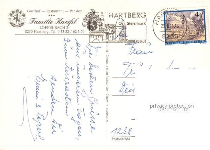 73245787 alte Postkarte Hartberg Steiermark Gasthof Pension Kneissl Garten postalisch gelaufen Erhaltung siehe scans [FriedD77] KatCode: 11390224060710