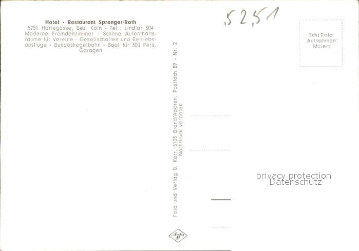 41636074 Hartegasse Hotel-Restaurant Sprenger-Roth Kegelbahn postalisch nicht gelaufen Erhaltung siehe scans KatCode: 11110005374020