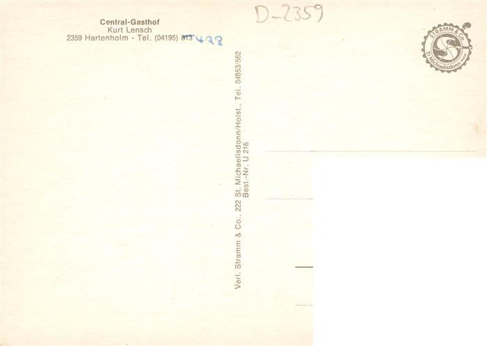 73890589 Hartenholm Central Gasthof Kurt Lensch Gaststube Schwanenteich postalisch nicht gelaufen Erhaltung siehe scans [FriedD77] KatCode: 11110001060034