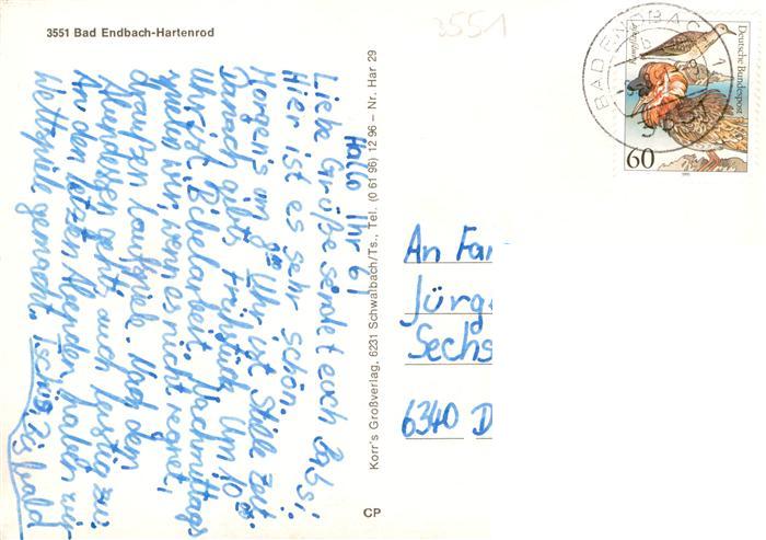 73936631 alte Postkarte Hartenrod Bad Endbach Marburg-Biedenkopf Panorama Hotel Wassertreten postalisch gelaufen Erhaltung siehe scans [FriedD77] KatCode: 11110006534003