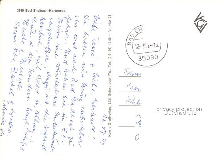 72245352 alte Postkarte Hartenrod Gladenbach Gesamtansicht Kurpark Bruecke postalisch gelaufen Erhaltung siehe scans KatCode: 11110006534003