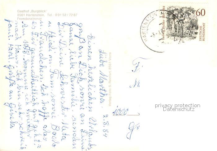 73658629 alte Postkarte Hartenstein Mittelfranken Gasthof Burgblick Ortsmotiv mit Kirche postalisch gelaufen Erhaltung siehe scans [FriedD77] KatCode: 11110009574129