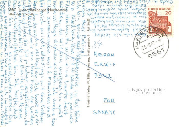 73727198 alte Postkarte Hartenstein Mittelfranken Jugendherberge Burg Hartenstein Hersbrucker Schweiz postalisch gelaufen Erhaltung siehe scans [FriedD77] KatCode: 11110009574129
