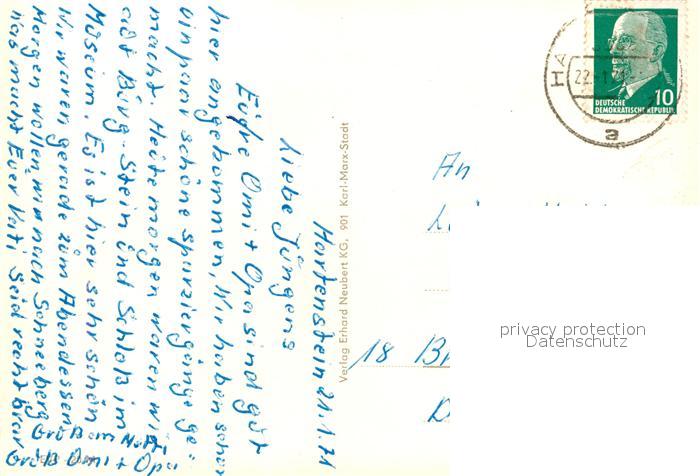 73036549 alte Postkarte Hartenstein Zwickau Burg Stadtansichten postalisch gelaufen Erhaltung siehe scans [KathaD81] KatCode: 11110014193130