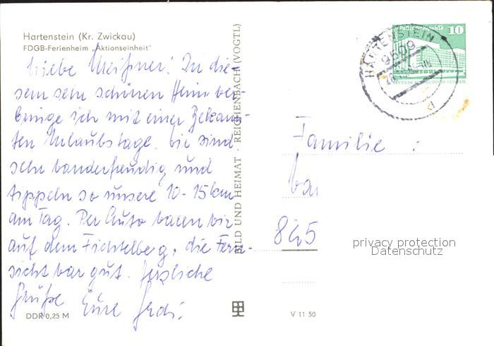 72075928 alte Postkarte Hartenstein Zwickau Ferienheim Aktionseinheit postalisch gelaufen KatCode: 11110014193130