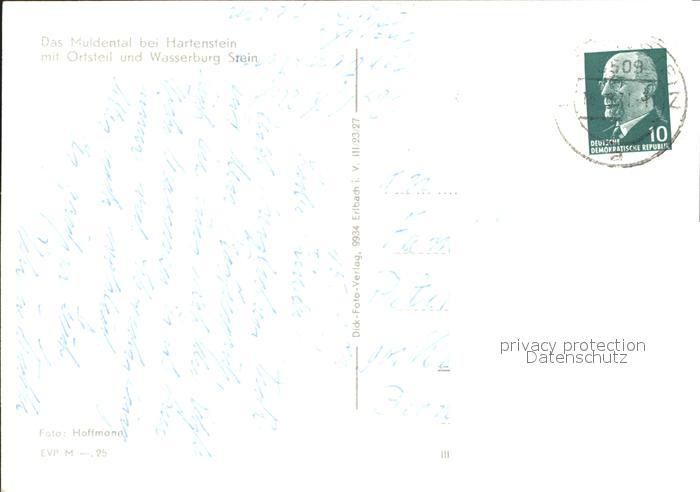 72355937 alte Postkarte Hartenstein Zwickau Muldental mit Ortsteil und Wasserburg Stein postalisch gelaufen Erhaltung siehe scans KatCode: 11110014193130
