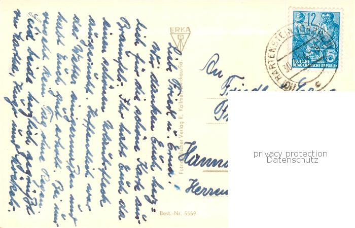 73811499 alte Postkarte Hartenstein Zwickau Sachsen Markt mit Rathaus und Flemming Denkmal postalisch gelaufen Erhaltung siehe scans [WerneD78] KatCode: 11110014193130