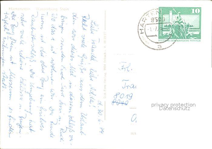 72365496 alte Postkarte Hartenstein Zwickau Wasserburg Stein postalisch gelaufen Erhaltung siehe scans KatCode: 11110014193130