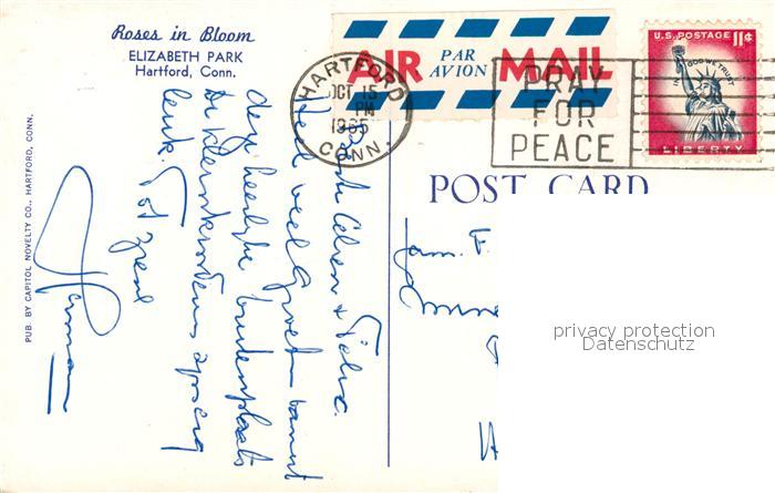 73131645 old postcard Hartford Connecticut Elizabeth Park postalisch gelaufen Erhaltung siehe scans [KathaD81] KatCode: 14140070000000
