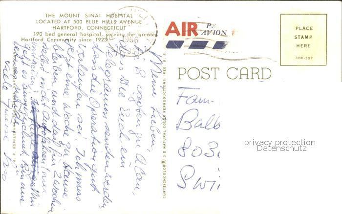 11686244 old postcard Hartford Connecticut Mount Sinai Hospital Autos postalisch gelaufen Erhaltung siehe scans KatCode: 14140070000000