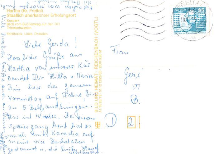 73947365 alte Postkarte Hartha Doebeln Kurpark Blick vom Buchenweg Triebischwiesen postalisch gelaufen Erhaltung siehe scans [WerneD78] KatCode: 11110014375070
