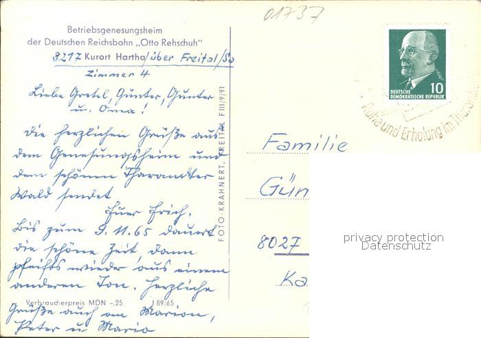 72027219 alte Postkarte Hartha Tharandt Betriebsgenesungsheim Otto Rehschuh postalisch gelaufen Erhaltung siehe scans KatCode: 11110014290440