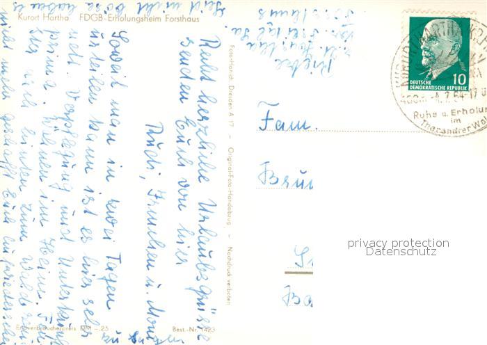 33612493 alte Postkarte Hartha Tharandt FDGB Erholungsheim Forsthaus postalisch gelaufen Erhaltung siehe scans [FriedD77] KatCode: 11110014290440
