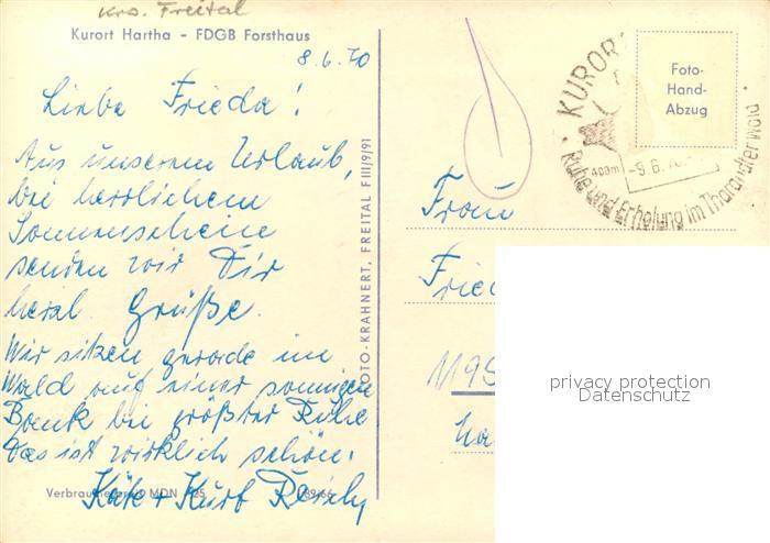 73102557 alte Postkarte Hartha Tharandt FDGB Forsthaus postalisch gelaufen Erhaltung siehe scans [KathaD81] KatCode: 11110014290440