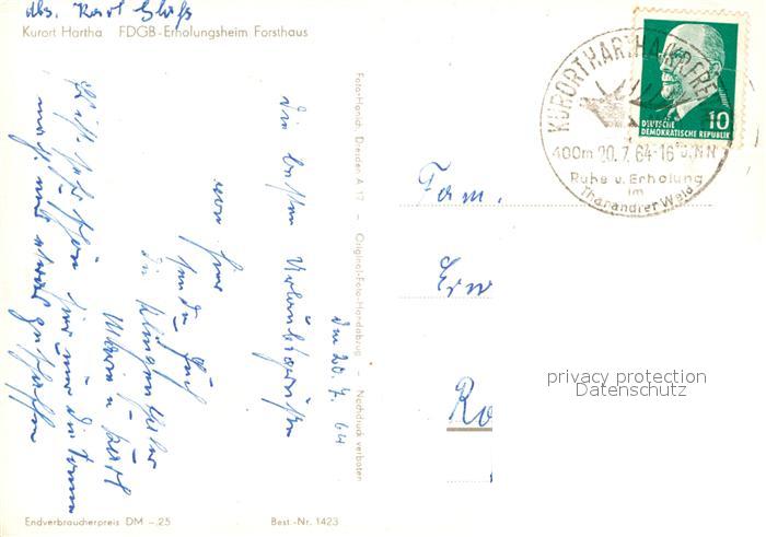 72986180 alte Postkarte Hartha Tharandt Kurort FDGB Erholungsheim Forsthaus postalisch gelaufen Erhaltung siehe scans [FriedD77] KatCode: 11110014290440