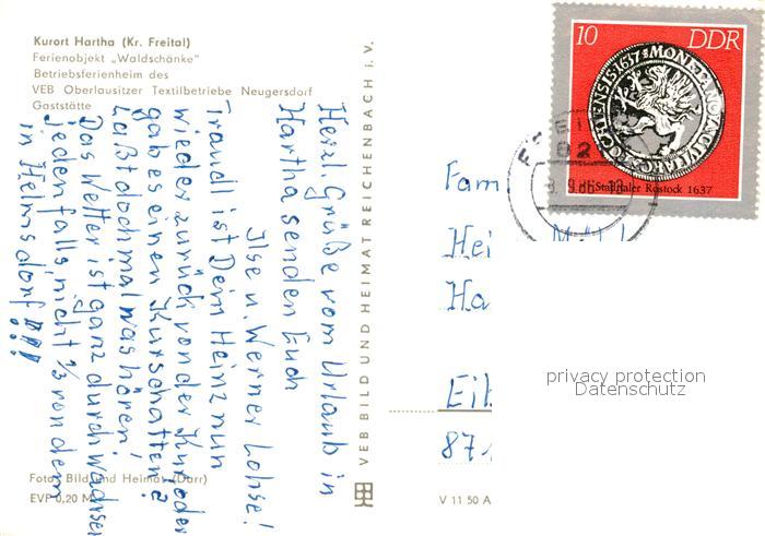 73086614 alte Postkarte Hartha Tharandt Waldschaenke Gaststaette postalisch gelaufen Erhaltung siehe scans [NatalD47] KatCode: 11110014290440