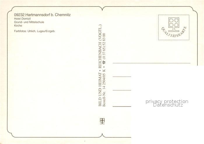 73741032 Hartmannsdorf Chemnitz Hotel Domizil Grund und Mittelschule Kirche postalisch nicht gelaufen Erhaltung siehe scans [WerneD78] KatCode: 11110014182160