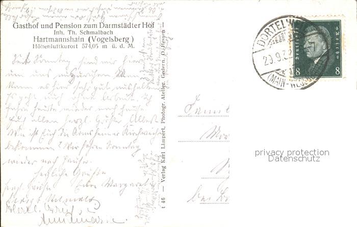 32102603 alte Postkarte Hartmannshain Gasthof-Pension Zum Darmstaedter Hof postalisch gelaufen Erhaltung siehe scans KatCode: 11110006535007
