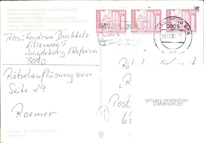 72401250 alte Postkarte Harz Josefshoehe Netzkater Josefskreuz postalisch gelaufen Erhaltung siehe scans KatCode: 11110015085145