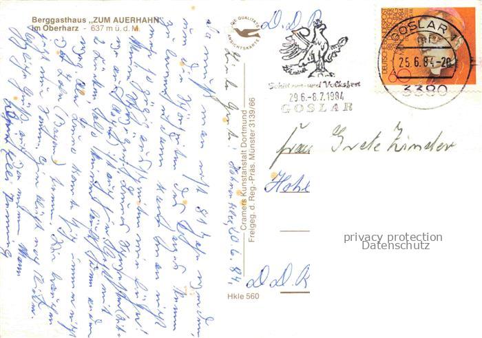 74110451 alte Postkarte Harz Region Berggasthaus Zum Auerhahn Fliegeraufnahme postalisch gelaufen Erhaltung siehe scans [WerneD78] KatCode: 11110015085145