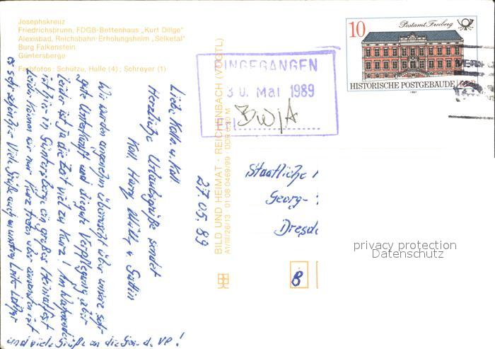 72354932 alte Postkarte Harz Region Josephskreuz Friedrichsbrunn FDGB Bettenhaus Alexisbad Erholungsheim Burg Falkenstein Guentersberge postalisch gelaufen Erhaltung siehe scans KatCode: 11110015085145