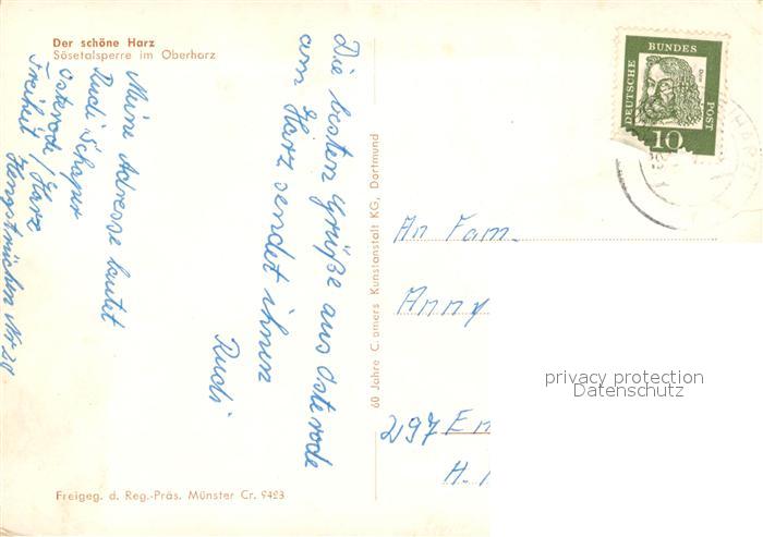 73164951 alte Postkarte Harz Region Soesetalsperre Fliegeraufnahme postalisch gelaufen Erhaltung siehe scans [WerneD78] KatCode: 11110015085145