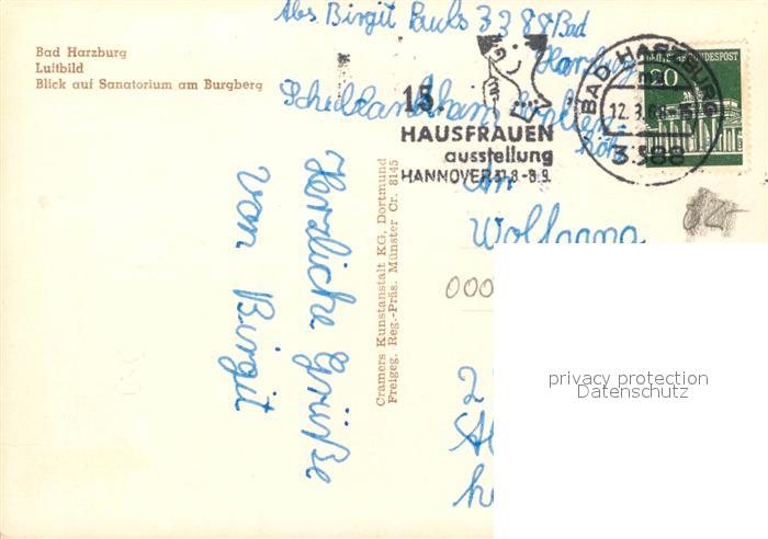 73165359 alte Postkarte Harzburg Bad Fliegeraufnahme Sanatorium Burgberg postalisch gelaufen Erhaltung siehe scans [KathaD81] KatCode: 11110003153002