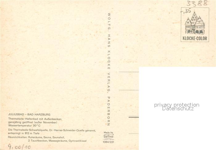 73128955 Harzburg Bad Juliusbad Schwimmbad postalisch nicht gelaufen Erhaltung siehe scans [KathaD81] KatCode: 11110003153002