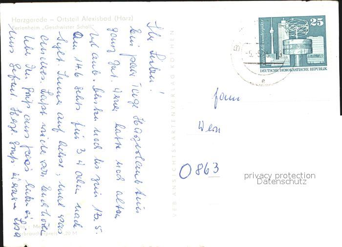 72608779 alte Postkarte Harzgerode Alexisbad Ferienheim Geschwister Scholl postalisch gelaufen Erhaltung siehe scans [LiesaD40] KatCode: 11110015085145