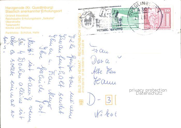 72017609 alte Postkarte Harzgerode OT Alexisbad Erholungsheim Selketal Oberstrasse Teilansicht Kirche Rathaus postalisch gelaufen Erhaltung siehe scans KatCode: 11110015085145