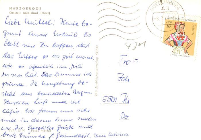 73944143 alte Postkarte Harzgerode OT Alexisbad Panorama postalisch gelaufen Erhaltung siehe scans [WerneD78] KatCode: 11110015085145