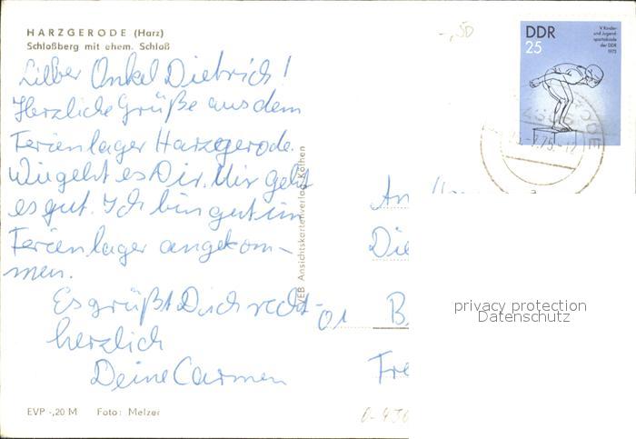 72115909 alte Postkarte Harzgerode Schlossberg Ehemaliges Schloss postalisch gelaufen Erhaltung siehe scans KatCode: 11110015085145