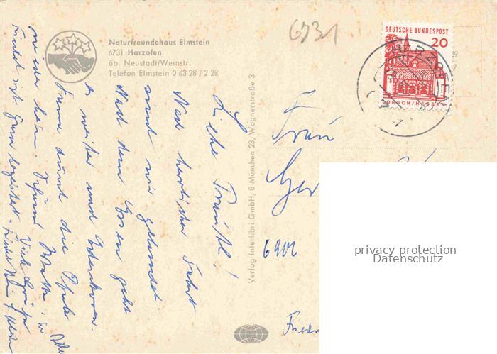 74047362 alte Postkarte Harzofen Naturfreundehaus Elmstein postalisch gelaufen Erhaltung siehe scans [FriedD77] KatCode: 11110007332014
