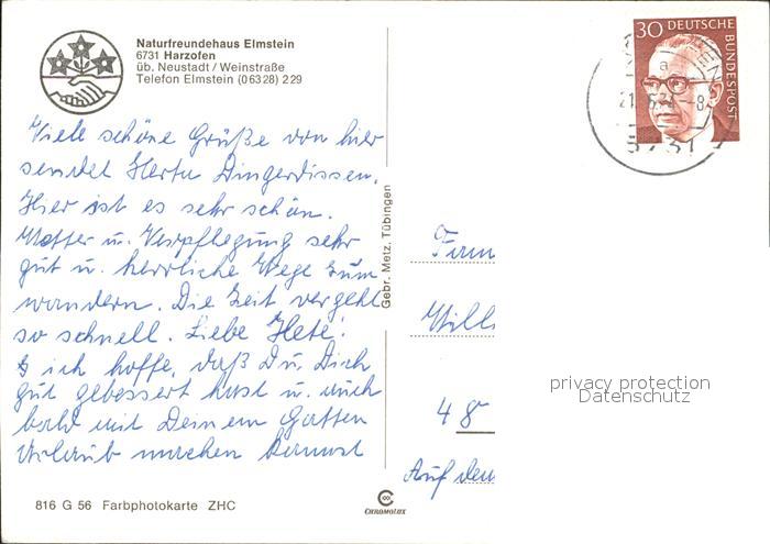 72288237 alte Postkarte Harzofen Naturfreundehaus Elmstein postalisch gelaufen Erhaltung siehe scans KatCode: 11110007332014