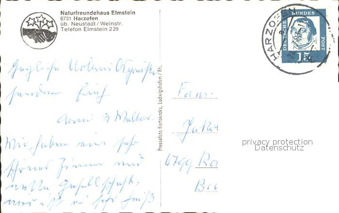 72096900 alte Postkarte Harzofen Naturfreundehaus Elmstein postalisch gelaufen Erhaltung siehe scans KatCode: 11110007332014